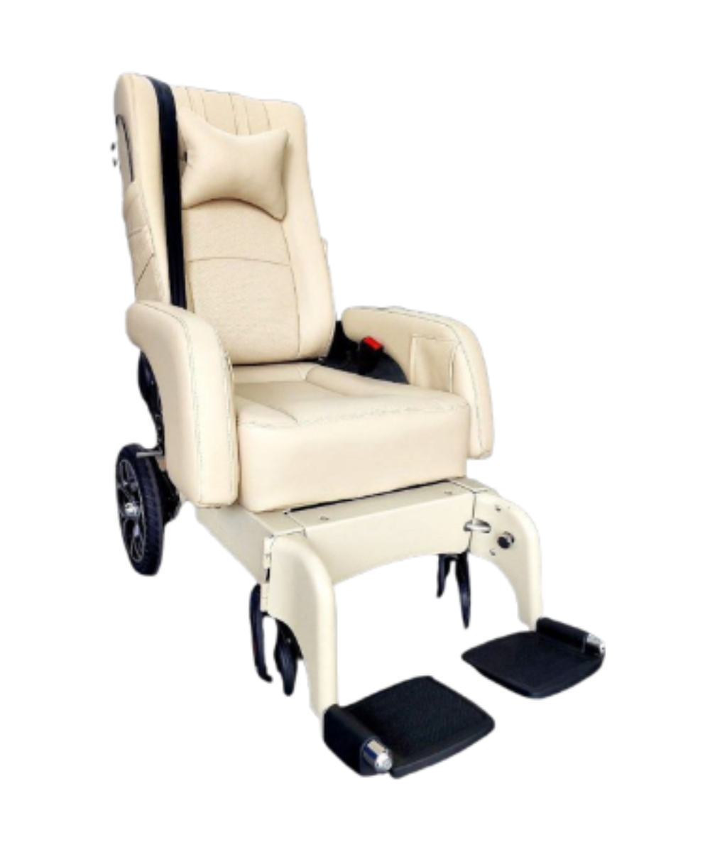 This fully automated system boasts an electrically operated hydraulic lift-up and swing-out mechanism, streamlining wheelchair transfers with unparalleled ease. Further enhancing user experience are 180-degree backrest adjustability, a removable footrest, and an adjustable armrest. Equipped with a back wheel disc brake and supporting up to 120kg, Carena – SpinPro blends superior comfort, advanced automation, and dignified accessibility for individuals desiring the highest standard in mobility solutions.