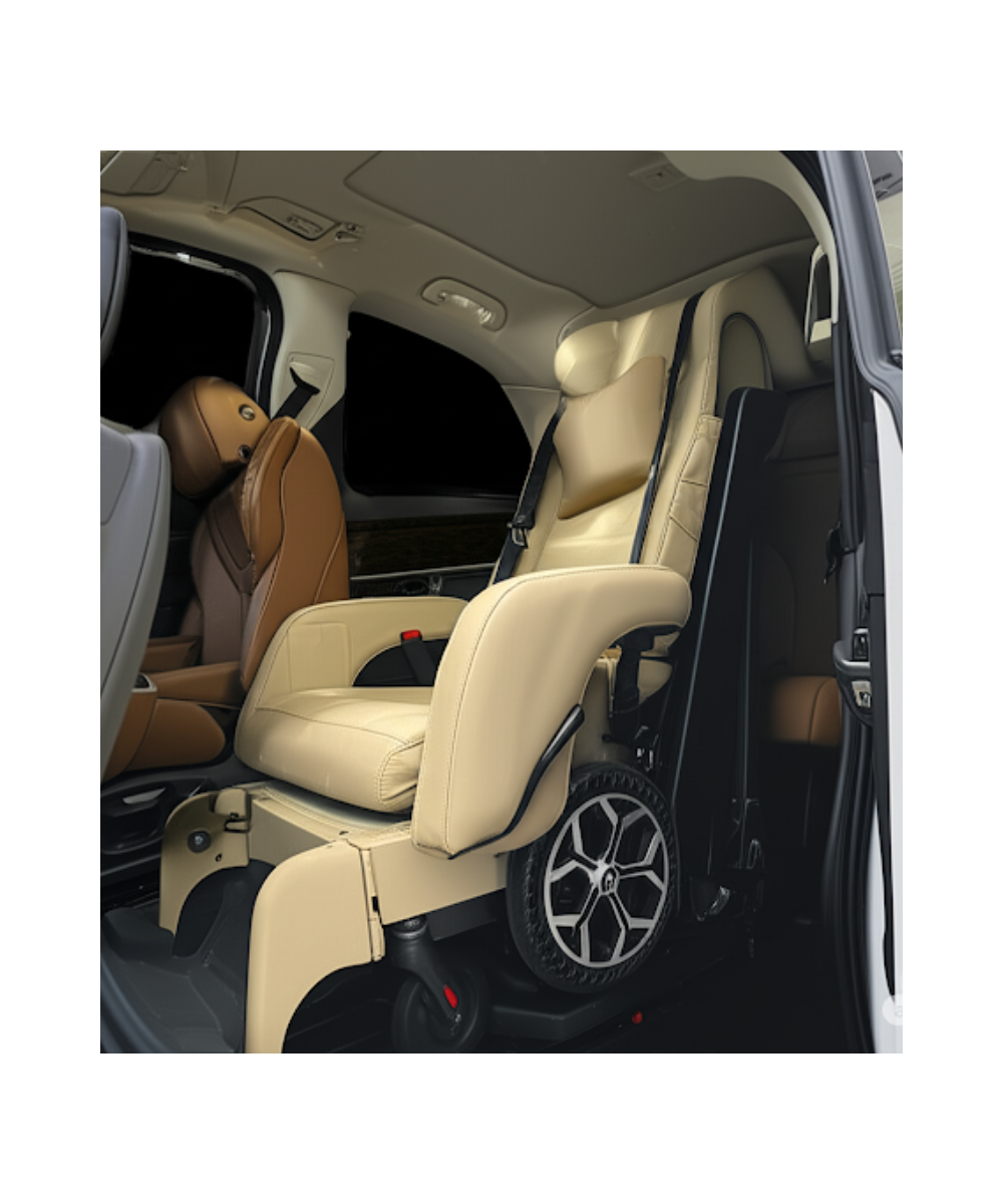 Carena – SpinPro represents the pinnacle of automated car swivel seat solutions, meticulously designed to provide safe and effortless vehicle entry and exit, especially for wheelchair users seeking a premium experience. Crafted with top-quality materials, including custom genuine leather color options to perfectly match a vehicle’s interior, and featuring a comfortable, handmade cushion, SpinPro prioritizes luxurious comfort alongside advanced functionality.